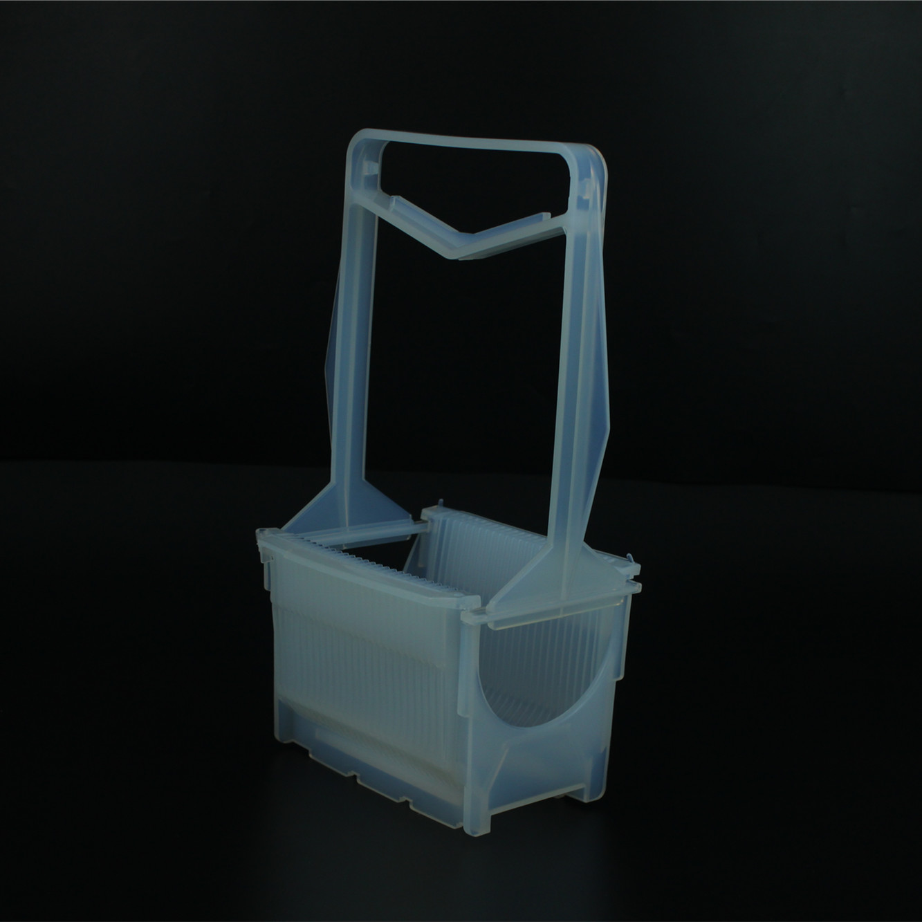 PFA花篮又叫PFA清洗花蓝 、 特氟龙卡匣、 特氟龙晶舟盒、特氟龙晶圆盒、特氟龙晶片清洗架、特氟龙晶圆架、特氟龙刻蚀花篮、特氟龙刻蚀清洗架、PFA显影花篮