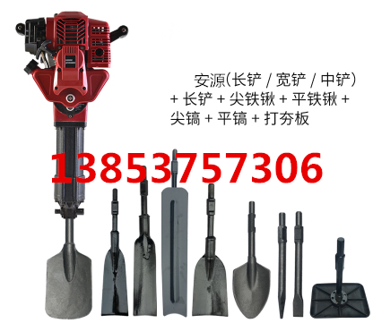 便携式挖树机,起树机,配置52CC汽油机动力,不受场地所限,在汽油镐的下部装一个铁锹,就可以轻松起树,移栽、起球、起苗等。汽油机带动冲击系统使机器连续冲击,将其树根/主根/毛根/断裂,将其手动提起。锹的形状有3种,一款尖型,一款方形,一款挖树刀。平铁锹尖铁锹铸钢材质的,比较厚重;挖树刀有开刃可以断根