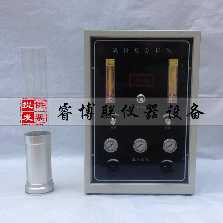 GBT-5454氧指数测定仪,是根据IS04589和标准《GBT 2406.2-2009 塑料用氧指数法测定燃烧行为 室温试验》、《GBT 5454-1997 纺织品 燃烧性能试验 氧指数法》规定的技术要求而研制的新产品。是用来测定聚合物燃烧过程中所需氧的体积百分比,聚合物氧指数值是在该物质引燃后,保持燃烧50mm长或燃烧时间为180s(3min)时所需要的氧、氮混合气流中,刚好维持试样燃烧所需的Z低氧浓度(亦称氧指数)。