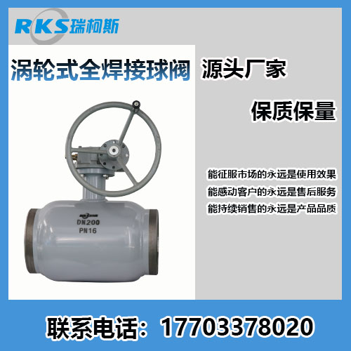 涡轮式全焊接球阀是采用固定球的结构,斜面弹性可以保证密封圈紧压在球体之上,即使是在压力不稳定的情况之下,阀门也可以保证其密闭性非常可靠。阀杆的防泄漏结构是使用两“o”型圈,可使阀杆转动自如且密封严密,无泄漏。