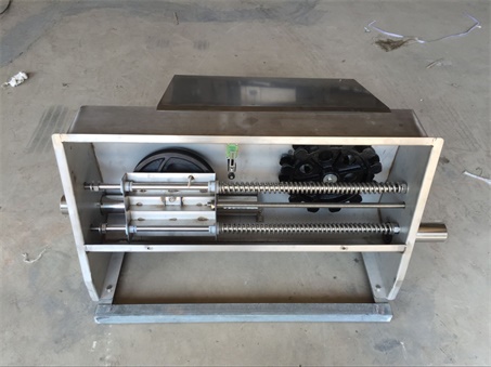 链轮精密铸造,强度高,耐磨,自动料线主机设有安全保护装置,提供动力,带动塞片链条带动饲料沿着输送管道循环运行,借助于运动着的塞片链条,把饲料输送到定量桶或料槽。 卧式驱动主机是永高农牧养猪设备猪场自动供料系统中配件之一。主要是通过减速电机运动带动塞盘工作,从而使整个系统开始工作。