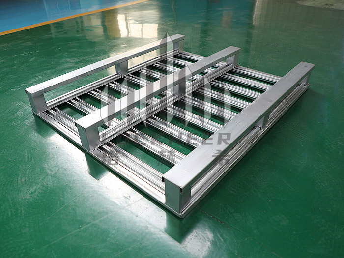 3、在钢制托盘的表面可以作防滑处理,为防止钢尖利角的钩挂,在托盘的周边作包边处理。底盘坚固,整体质量轻而钢性强。具备稳定的包装性能。