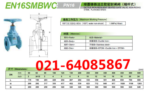 EN16SMBWC球墨铸铁法兰软密封闸阀日本KITZ北泽球墨铸铁法兰软密封闸阀PN16(暗杆式)EN16SMBWC