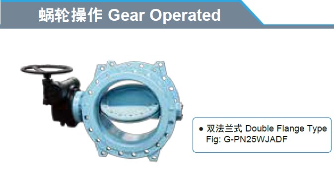 日本KITZ北泽双法兰双偏心涡轮蝶阀 G-PN25WJADF 工作压力:2.5Mpa、适用温度:-10度-80度为NBR橡胶、-10-100度为EPDM橡胶 介质:水 口径DN100-DN1200