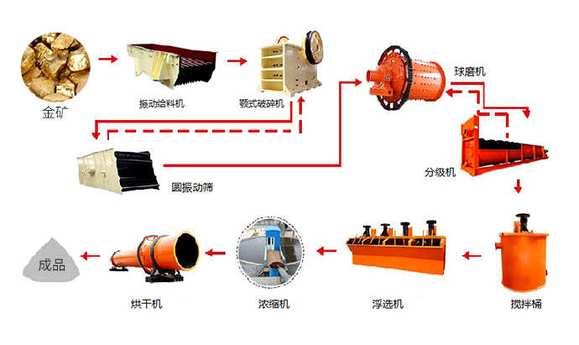 选金矿石设备对于砂金矿中的粗粒金的回收,一般直接采用重选法,回收绝大部分的金,然后在根据金矿的性质确定采用混汞或是摇床进一步回收金和其他重金属。