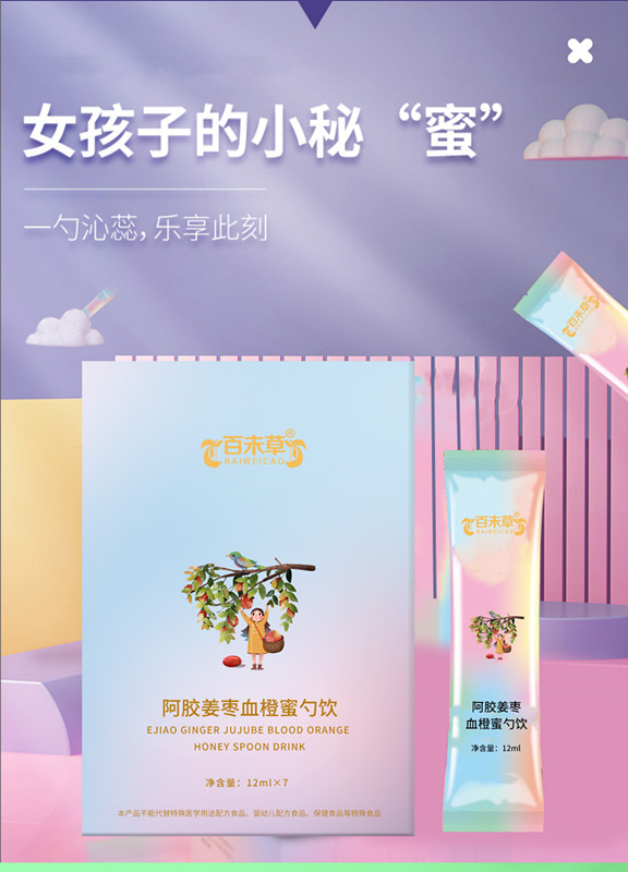 (产品名称)百未草阿胶姜枣血橙蜜勺饮品