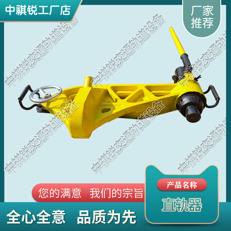 液压直轨器是一种对线路上的钢轨水平方向进行调直(或弯曲)的手动液压专用工具。液压直轨机重量轻,具有操作简单。液压直轨机使用时,将直轨器弯钩钩住轨头侧面,活塞顶头顶住轨头另一侧,再转动偏心手轮,将直轨器锁紧在钢轨上,此时旋紧放油阀,插入撬棍,即可进行直轨作业。作业完毕,旋松放油阀,待活塞缩回,再反向转动偏心手轮,即可将直轨器从钢轨上抬下。泵油加载前,须检查直轨器在钢轨上安装状态,直轨器要放平,弯钩底面要贴紧钢轨上顶面,弯钩及两端的偏心轮和活塞顶头须与钢轨头两侧面接触良好。泵油加载时,动作不易过快。天津YZB-750液压直轨器_轨道直轨器_铁路养路机械|产品大全