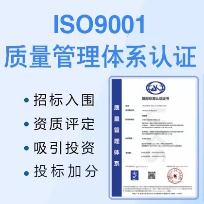 ISO9000质量管理体系是企业发展与成长的根本,ISO9000不是指一个标准,而是一类标准的统称。ISO9001质量管理体系是国际标准化组织(ISO)制定的国际标准之一,在全球范围内得到该组织的100多个成员国家和地区的认可。目前全球已有几十万家工厂企业、**机构、服务组织及其它各类组织导入ISO9000质量管理体系并获得第三方认证机构的认证证书。