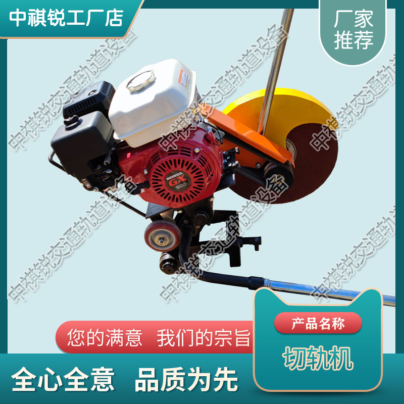 1、先将卡具牢固的装卡在钢轨上,再装置砂轮片后拉燃发动机,预热30秒,当发动机平稳运行时方可进行切轨作业。