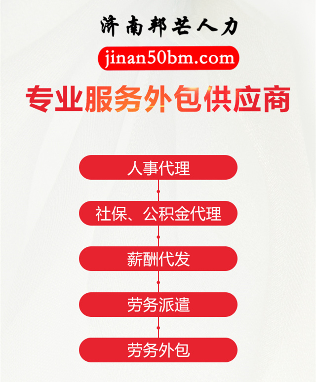 济南邦芒人力资源有限责任公司坚持专注人力资源服务,成立至今先后为上万家企业提供人力资源服务,在业界赢得了良好的口碑。并且荣获诚信企业、服务外包培育单位等的授信和表彰。公司对外服务范围:“工资代发、人事代理、社保代理、人力资源、劳务派遣、劳务外包、项目外包、业务外包、灵活用工、薪酬外包、薪资代发、人事外包、人力资源服务外包、薪酬代发、业务流程外包、个税优化、劳务费代发、岗位外包”等。目前与济南邦芒人力建立人事外包合作客户近万家,雇员数十万人。人力资源服务覆盖了人员招聘、面试、测评、培训、体检、档案整理、工资、五险一金、合同、辞职及其他相关服务。