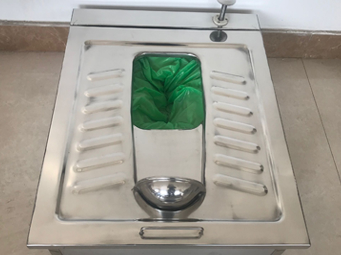 机械打包蹲便器通过薄膜制成的包装袋包装粪便,由机械装置牵引并封闭包装袋,采用微电脑自动控制,如厕者便闭,粪便随包装袋下移进入储便桶内,厕坑表面的包装袋 新,封闭装置再次封闭,避免异味排出,便后不用水冲洗。适用于供水设施不便情况下的公共厕所,符合人们在公共场所喜欢用蹲式的习惯。