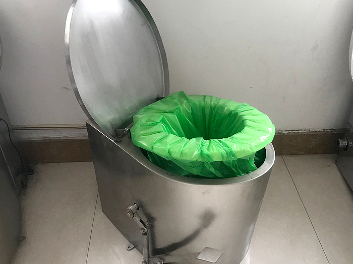 恒信生产的产品打包便器由外壳、机械装置、包装袋等组成。通过可降解薄膜制成的包装袋包装粪便,由机械装置牵引并封闭包装袋,采用微电脑自动控制,如厕者便闭,粪便随包装袋下移进入储便桶内,厕坑表面的包装袋新,封闭装置再次封闭,避免异味排出,便后不用水冲洗。打包便器适用于供水设施不便情况下的公共厕所,符合人们在公共场所喜欢用的姿势习惯。免水冲厕具的壳体、面板均采用不锈钢压形,焊接加工而成,具有足够的强度和刚性,。壳体内装有电动机和机械传动机构,采用微电脑自动控制,定位支撑,便于替换、安装塑料袋,并为厕具的维修、保养提供一个便利的操作空间。