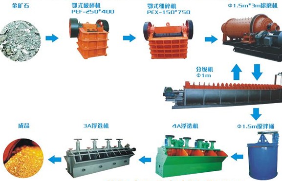 据调查,我国80%左右的岩金矿山采用浮选法选金,近年来产品结构发生了较大的变化,多采取就地处理(当然也由于选冶之间的矛盾和计价等问题,迫使矿山就地自行处理)促使浮选工艺有较大发展,在黄金生产中占有相当的重要地位。通常有优先浮选和混合浮选两种工艺。近年来在工艺流程改造和药剂添加制度方面有新的进展,浮选回收率也明显提高。据全国40多个选金厂,浮选工艺指标调查结果表明,硫化矿浮选回收率为90%,少数高达95%~97%;氧化矿回收率为75%左右;个别的达到80%~85%。阶段磨浮流程,重—浮联合流程等,是目前我国浮选工艺发展的主要趋势。当然,浮选法和其他方法一样不是万能的,不可能对所有含金矿石都有效,主要还要考虑矿石性质,在选择工艺流程时,需进行多方面的论证和试验。
