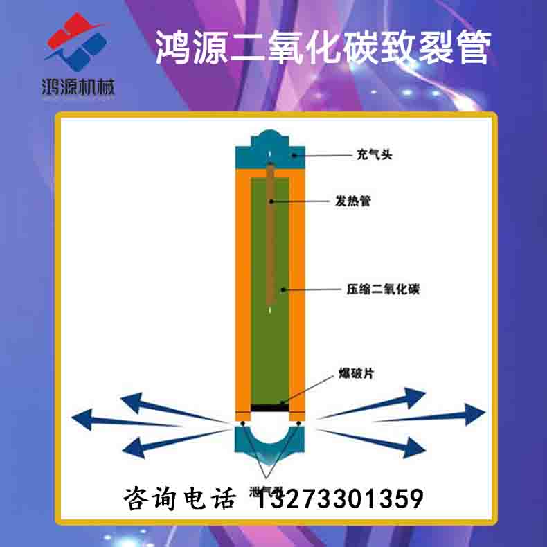 (二氧化炭致裂设备)@结构多少钱一台。包括致裂管、致裂片和引报组件;致裂管包括充液端、出气端以及位于两者之间的储存腔;充液端设置有与储存腔连通的二氧化炭入口;出气端设置有与储存腔连通的二氧化炭出口;引报组件设置于储存腔内;致裂片为布置于储存腔内与储存腔轴线垂直的板状结构,致裂片位于出气端和充液端之间,储存腔内设置有导流腔;导流腔为布置于出气端和致裂片之间的喇叭型通道,导流腔与储存腔同轴布置,其小头端朝向出气端一侧;二氧化炭出口与导流腔连通。本实用新型结构简单合理,便于制造加工,安装与使用方便。