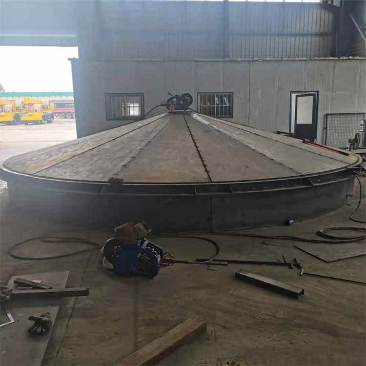 1. 防爆盖采用锥形结构,分四个部分连接而成,每部分由钢板,角钢组焊成型。