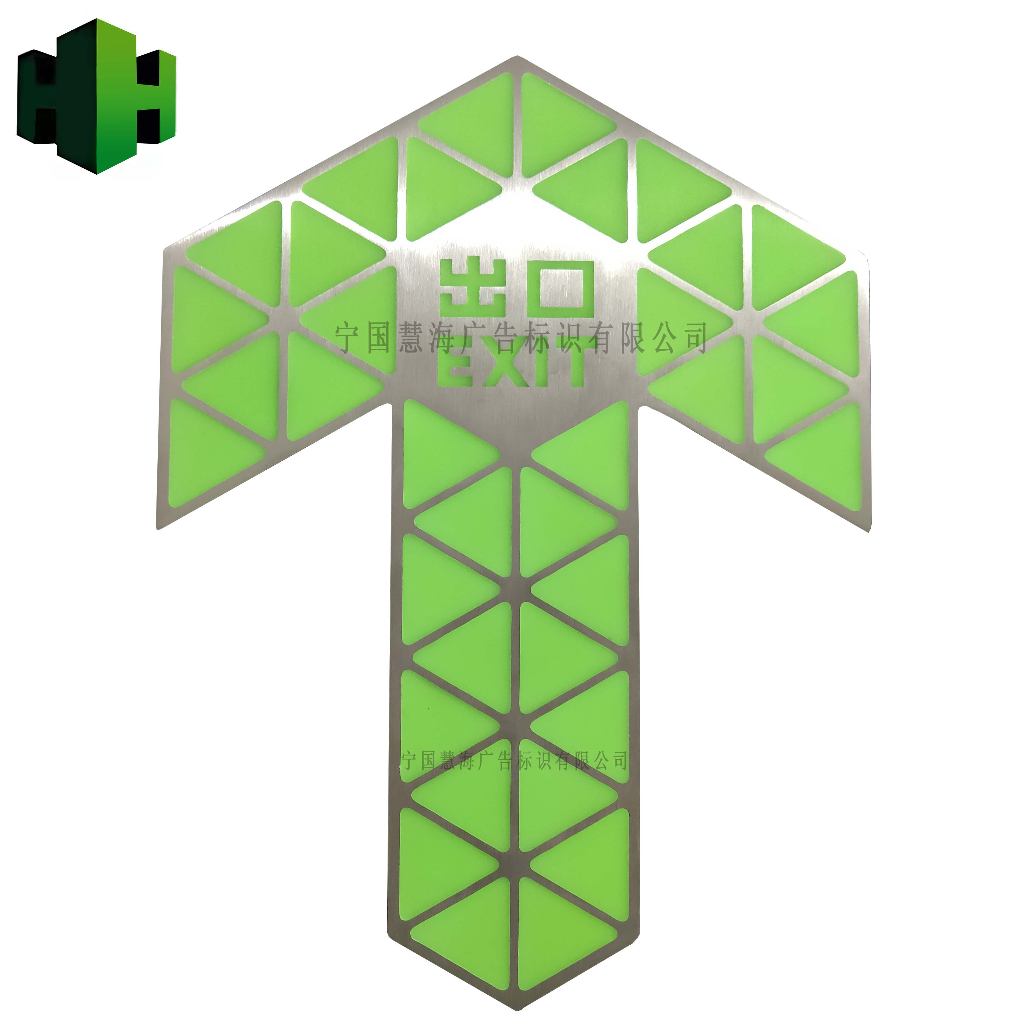 不锈钢蓄光消防安全导向标识是目前轨道交通必须安装的辅助型逃生疏散指示地标,在屏蔽门、站厅地面、站内墙面以及楼梯出口均要安装指向安全出口。