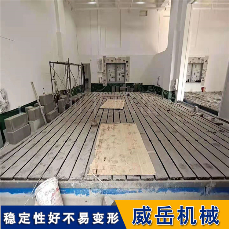 铸铁试验平台又称为试验平板,铸铁试验平台表面可以有孔或T型槽,用来固定工件,和清理加工时产生的铁屑或放以固定销。也可以设计成平面。广泛应用于机械、发动机的动力实验,设备调试,具有较好的平面稳定性和韧性,表面带有T型槽,可以用来固定实验设备;同时适用于各种产品的检验工作,铸铁试验平台用于检查零件的尺寸精度或行为偏差,并作精密 划线试验平台在机械制造中也是不可缺少的基本工具。说到这我们不得不说一下铸铁试验平台必不可少的人工刮研工艺,为何铸铁试验平台一定要人工刮研呢?