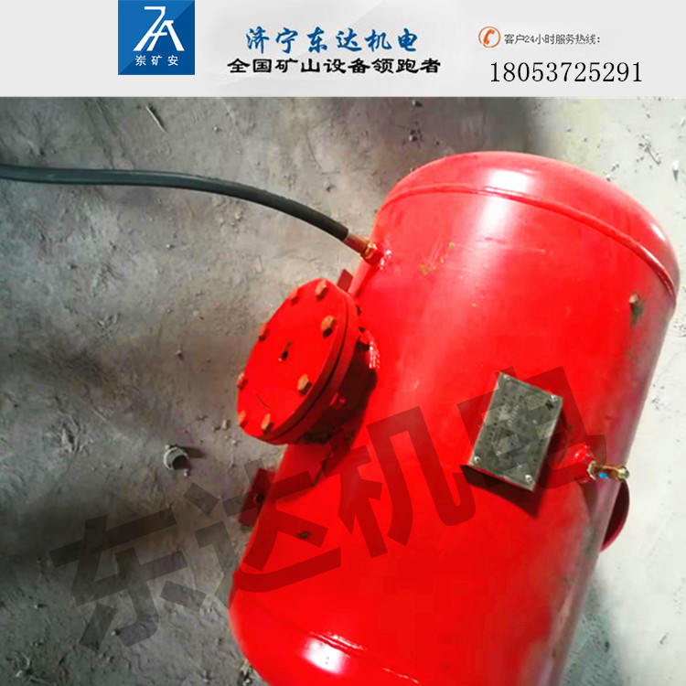山东矿安机电有限公司、山东东达机电有限责任公司 选型原则: (1)容积30、50、70L的破拱器主要用于贮料比重小(取决于物料颗粒大小、湿度大小),流动性较好,贮料仓容量及截面积较小的场合,如:粮仓、氧化粉、木屑、塑料仓、小型水泥仓及输料管路上。 (2)容积70、100、170L的破拱器主要用于贮存一般物料的中小型料仓。如:高纯石墨、化肥、水泥、铸造用沙、小型装车闸门,小型矸石仓等。 (3) 容积170、300L的破拱器,主要用于贮料比重较大,贮料仓容量及截面积不太大,流动条件差及易板结压实的贮料仓上,石灰窑等石灰结壁。 如:各种中型装车煤仓,容量较大的原煤仓、缓冲仓、小型的精矿石料仓等。 (4) 容积500L的破拱器,主要用于大型的贮煤仓,比重很大的精矿石仓及其他特殊用 (5)容积500L以上定制型破拱器,主要用于直径30米的超大型出料仓,可分为单头和多头破拱器。 在热态上应用时应选用耐热型破拱器配置。 对于防爆要求的场所应选用气控型或电控防爆型电磁阀。 一般布置原则:在料仓结构分析及现场考察,一般来讲最易起拱、堵塞的部位,在垂直仓壁与锥形料斗结合部至下部,所在布炮重点也应在此范围。针对各种情况在容易起拱处按角度分层次布置破拱器若干台,组成一个操作系统进行工作。一般来讲,布炮的层距为0.9-2.5米,间距为3米左右交错配备。这些只是一般选择方法。一个料仓确切的配置几台,分几层布置因具体情况而定。