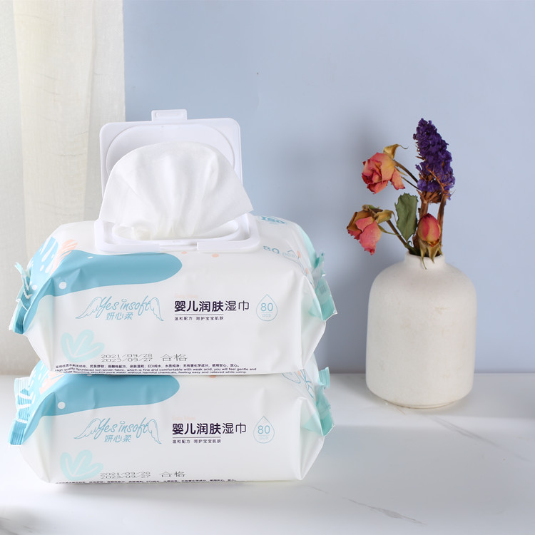 平纹湿巾80抽婴幼儿湿巾收口用纯棉湿巾加工厂家,无荧光剂,水润亲肤 加厚无纺布,手口适用,布置柔韧,纹理细腻,给宝宝柔软亲肤的健康呵护,可以脸部清洁,宝宝如厕,身体清洁,用餐清洁,清洗玩具,哺乳清洁!