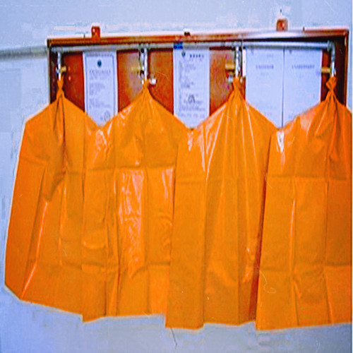 矿井压风自救装置是一种固定式永久性自救装备,用于具有煤与瓦斯突出的煤矿井下救灾防护,安装在有人工作的场所及人员流动的井巷或峒室,也可安装在掘进和回采工作面。当发生煤和瓦斯突出预兆时,工作人员可就近进入自救装置,打开压气阀避灾。当煤矿井下出现煤与瓦斯突出预兆或突出时,避灾人员应立即跑至压风自救装臵处,解开披肩防护袋,打开球阀开工,迅速钻进披肩防护袋,其压力达0.09Mpa左右,对袋外空气形成正压,而袋外有害空气压力低,不能进入防护袋,使避灾人员不致受侵害。披肩防护待材料具有不漏气、阻燃和抗静电特点。