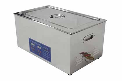 利用高频振荡讯号,通过换能器转化成高频机械振荡而传播到清洗溶液中,在清洗液中疏密相间的向前辐射,使液体流动而产生数以万计的微小气泡,这些气泡在超声波纵向长波成的负压区形成、生长而在正压区迅速闭合,在这种称之为“空化”效应的过程中,气泡闭合可形成超过1000个气压的瞬间高压,连续不断产生的高压就像一连串小“爆炸”不断地冲击物体表面,使物体表面及缝隙中的污垢迅速剥落,从而达到物件表面净化的目的。