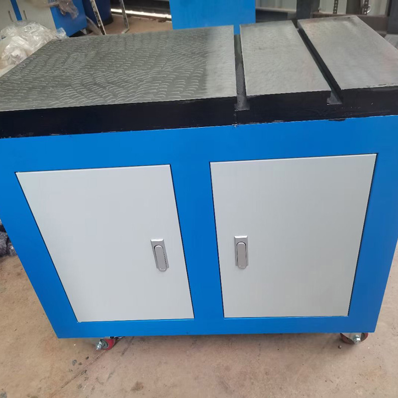 (攻丝机平台的规格): 常见规格为500x800、600x900,异形规格可以根据客户实际要求定做加工订做,攻丝机平台工作面采用人工刮研工艺,上表面开有3条T型槽,T型槽开口宽度为14mm。