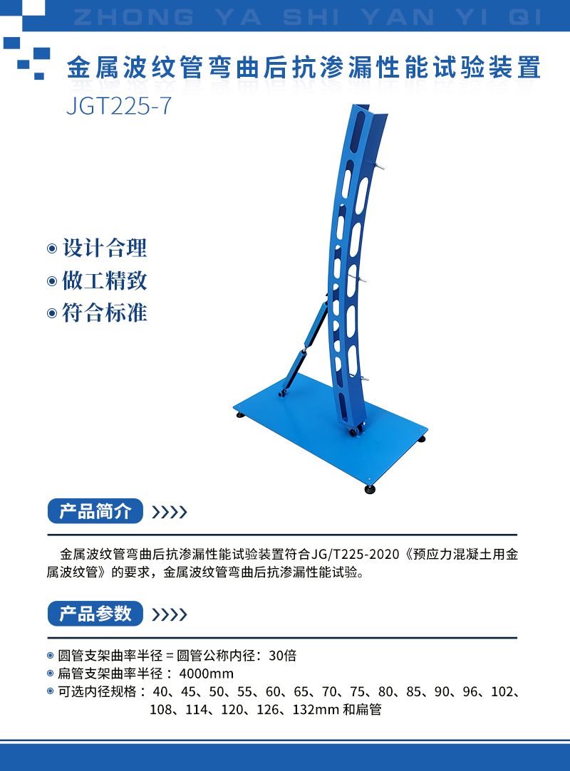 金属波纹管弯曲后抗渗漏性能试验装置JGT225预应力混凝土圆管扁管