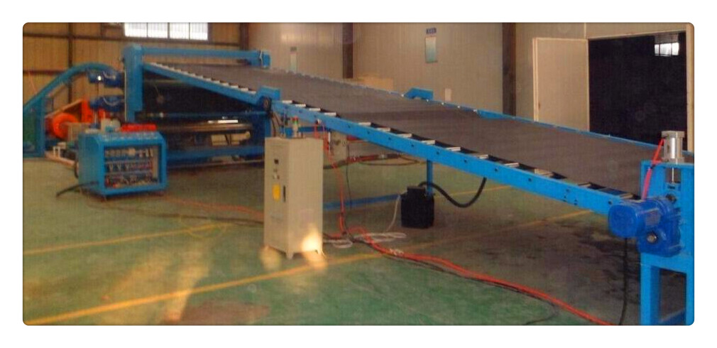 阻尼隔音毡板材挤出机,阻尼隔音毡片材生产线(规格)生产工艺:密炼机——自动提升机——锥双喂料机——单螺杆挤出机——液压自动换网装置——片材挤出模具----三辊压光机-----双工位放卷装置---—托架冷却------输送带------在线切割装置-----在线收卷
