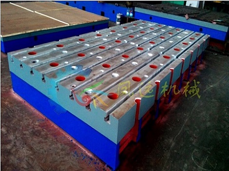 外观:铸铁平台为箱型筋板式,通常底部加强筋喷涂红色防锈漆,工作面边沿喷涂灰色油漆,边沿下部分喷涂蓝色油漆。也可以根据用户要求颜色喷涂。