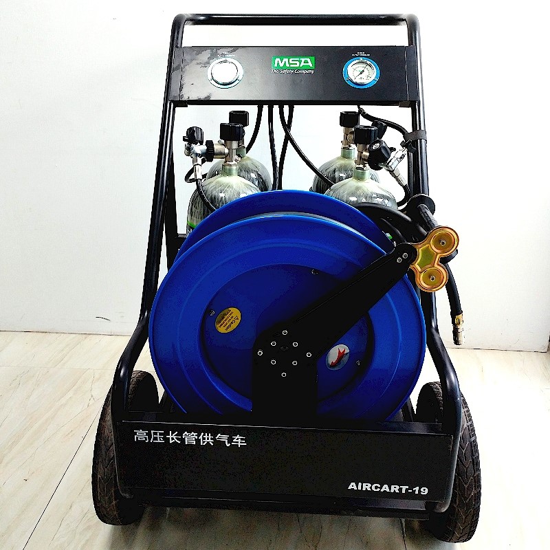 移动式供气装置属于高压送风式长管呼吸器,是一种便捷的外供气式呼吸保护装备,整套装置由车架总成、气瓶销售单元、供气管、Y型三通接头、长管呼吸器五个独立的产品,通过自行有机组合,实现可供呼吸保护的外供气式装备.它是以气瓶的压缩空气为气源,通过车架总成上的集气减压装置,经供气管提供到呼吸器的面罩中,供作业人员呼吸,起到有效保护作业者的呼吸系统。