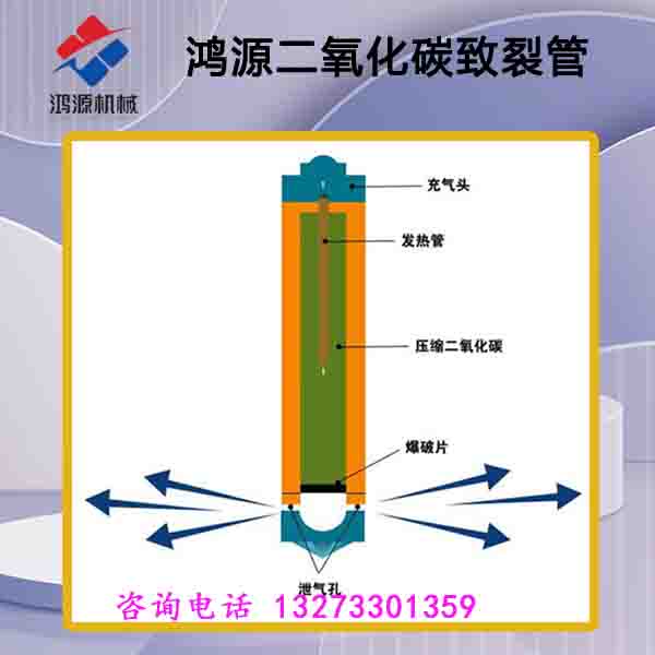 二氧化炭气体在一定的高压下可转变为液态,通过高压泵将液态的二氧化炭压缩至圆柱体容器(爆.破筒)内,装入安-全膜、破裂片、导热棒和密封圈,拧紧合金帽即完成了爆.破前的准备工作。将致裂筒和起爆器及电源线携至致裂现场,把致裂筒插入钻孔中固定好,连接起爆器电源。当微电流通过高导热棒时,产生高温击穿安-全膜,瞬间将液态二氧化炭气化,急剧膨胀产生高压冲击波致泄压阀自动打开,被致裂物品或堆积物受几何*当量冲击波向外迅猛推进,从起爆至结束整个过程只需0.4毫秒,且是低温下运行,与周围环境的液体,气体不相融合,不产生任何有害气体,不产生电弧和电火花,不受高温、高热、高湿、高寒影响。在井下致裂时对瓦斯具有稀释作用,无震荡,无粉尘。二氧化炭属于惰性气体非易燃易爆物质,致裂过程就是体积膨胀的过程,物理做功而非化学反应。