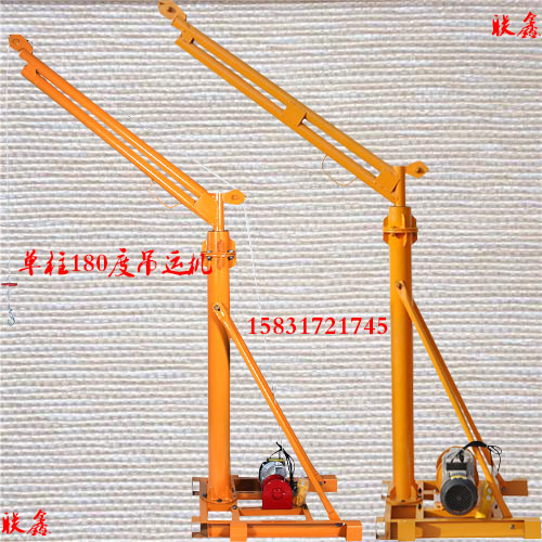 农村建筑提升机使用与农村、乡下、乡村镇等等,农村建筑提升机简称为“建筑小吊机”。220V室外吊运机使用很简单,不管是在房顶上面使用还是工地使用都很便携,本款室外吊运机属于180度旋转,在下面内容中小编详细讲述 :180度室外吊运机分为款式为:单管与双管,型号为:500KG、400KG,并且两款电动小吊机可双绳滑轮进行吊装,可搭配220V与380V电
