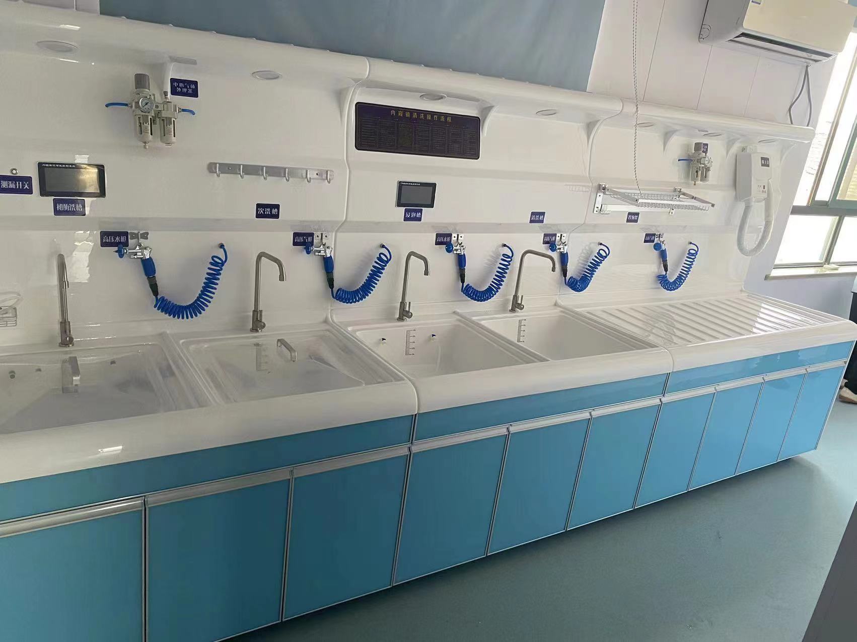 台面/洗消槽:台面、洗消槽及功能背板都采用优质的改性PMMA高分子材料分段式一体吸塑成型