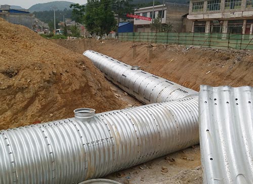 钢制波纹管拼装铺设后回填时,不需要特殊的填料,只使用一般土质。在距波纹管口30cm范围内的填土中,不得有石块或混凝土块、冻土块、高塑性粘土块或其他大尺寸超过8cm的有害物质。在多年冻土地区,涵洞管道周围2m范围内要求使用含土量不超过5%的砾石。