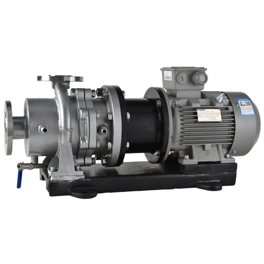 夹套保温磁力泵磁材采用强磁耐高温材料,确保足够的磁传力矩;隔离套设计成不等截面结构,较等截面筒型隔离套的涡流损失减少1/2;采用独特设计的新型保温箱结构,保证了介质在输送过程中不会冷凝,同时温度过高时,保温箱中的可通入冷却水,带走过多的热量,可以有效的保证电机和磁钢的正常运转;采用流体动力润滑轴承,比原有磁力泵的同心圆式轴承运转可靠,寿命较长;采用新型的保温结构,确保介质在运转过程中不会结晶;可以根据用户要求配备断流自动停车装置,以避免泵的干运转。