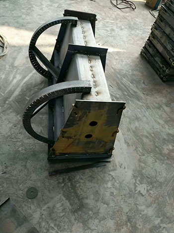 隔离墩模具选用的是钢板的材质进行模具的制作,钢板的硬度高,可塑性强,可以将钢板弯折成需要的形状,抗压能力强,连接好的模具是由外模组成的,没有内模,需要在模具的内侧进行大量混凝土的浇筑,需要承受的压力比较大,而钢板的材质符合需求,在加工好的钢板的外侧还进行了筋板的焊接,使加工的模具更加的坚固,焊接的筋板的数量以及尺寸是不固定的,钢板的厚度可以格局模具的大小进行调节,具体的尺寸根据模具的尺寸进行选择。