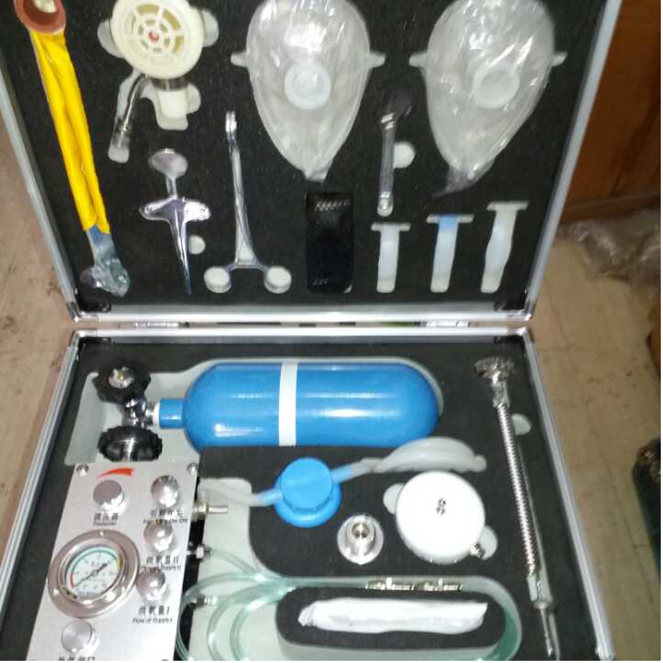 自带氧气瓶,工作压力:200公斤力、平方厘米
