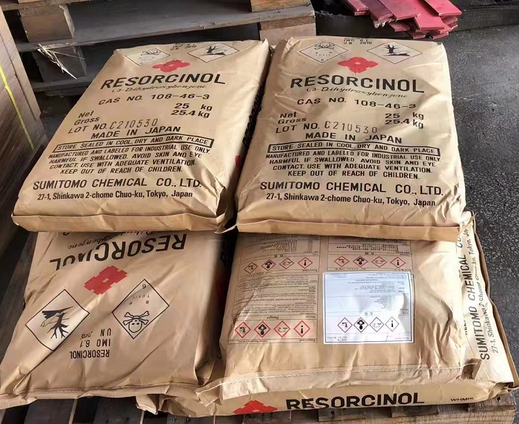 3.用作环氧树脂固化的促进剂及合成树脂、胶黏剂、染料、医药的紫外线吸收剂。还用于合成间苯二酚胶黏剂。间苯二酚是一种重要的有机化工产品和合成中间体,在轮胎及胶带中,使用间苯二酚RF树脂浸渍人造丝及聚酰胺纤维帘子线,可增加帘子线与橡胶之间的粘接作用。用间苯二酚氰尿酸三芳基酯可改善钢丝对橡胶的粘接性能。在橡胶胶料中加入间苯二酚、六亚甲基四胺和二氧化硅,可改进短纤维在橡胶母体中的增强作用。以间苯二酚为原料合成的双(二苯基膦酸)间苯二酚酯是一种非卤阻燃剂,具有较高的热稳定性,适用于改性聚醚、聚碳酸酯、ABS树脂以及各种热塑性树脂和聚氨酯等塑料。间苯二酚还具有一定的杀菌作用。