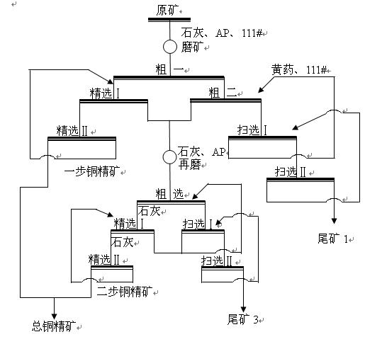 (1)氧化铜矿选矿单一浮选方案。根据国内外已有经验,一般简单氧化铜矿经硫化后有可能用黄药进行浮选。