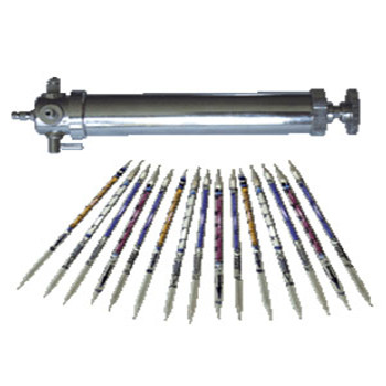 正压采样器的型号为CZY50型,圆筒形正压采样器主要由三通阀门、进气口、出气口、胶塞阀、拉杆、活塞、气筒及密封圈等部件组成。