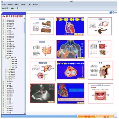 1、 内容十分丰富,素材库储存了大量的医学图片、医学动画、文字、flash制作的素材2D、3D动画及多种医学音频、视频等。其中包括各种临床实际病例和手术演示,生动形象、效果逼真。