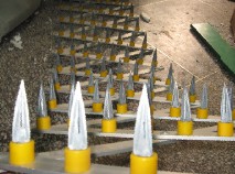 钉,胶套内的钢钉会随移动方向刺入车胎。气压使钢钉与路障分离。车轮继续转动,使车胎上合金钢钉越刺越深。车胎中气体便从合金钢钉内孔泄出。一般将有四至六支钢钉刺入车胎,在不到20秒时间内便将气体全部放出。达到有效拦截车辆的目的。