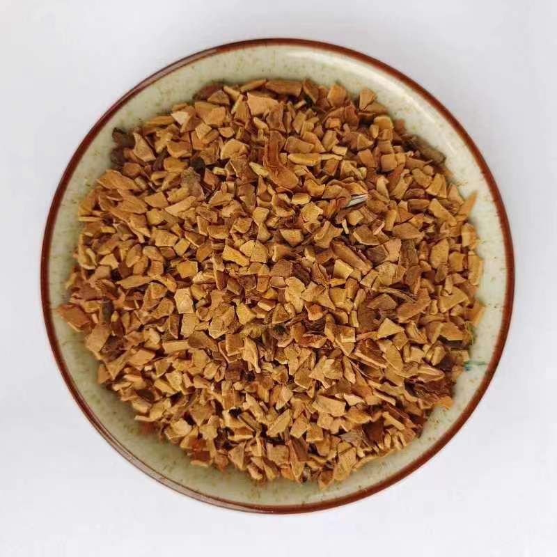 核桃壳是一种天然的滚光材料、用它做磨料不会破坏工件表面、抛光效果好等优点,化学性质稳定,不含有毒物质,在酸、碱、水中溶解量很小,核桃壳在盐酸溶液中的损耗为4.99%,在氢氧化钠溶液中的损耗率为3.8%,不会引起水质恶化现象。