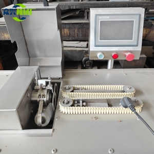 香肠扎线机主要用于香肠灌装完成后对香肠进行分节扎线,每节长度一致。扎线机种类繁多,主要分为全自动、半自动、手摇三种可针对大中小型香肠制作的厂家。