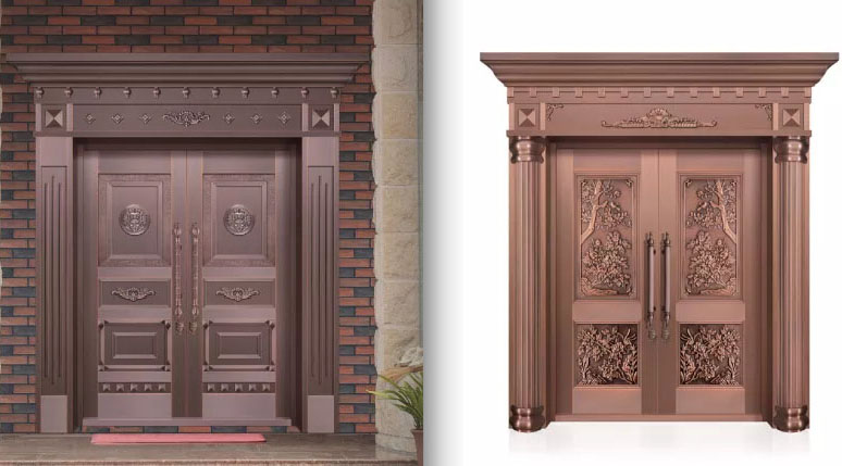 铜门的实用性:铜是一种稳定的金属,它的防腐蚀性能非常高,铜门比普通门更经久耐用,不仅不存在变形、开裂问题、使用寿命更长。美观性:铜门之所以受人喜爱,很大程度上与其精美的装饰工艺有关,精美的铜工艺用在铜门上,主要是一些经过浮雕、镂空、锻打后的花纹和吉祥图案。 展望未来,我们充满信心,我们将继续在各方面的支持和关爱下,按照建立现代化企业的要求,实现产品高新化、经营多元化、管理现代化、为振兴民族