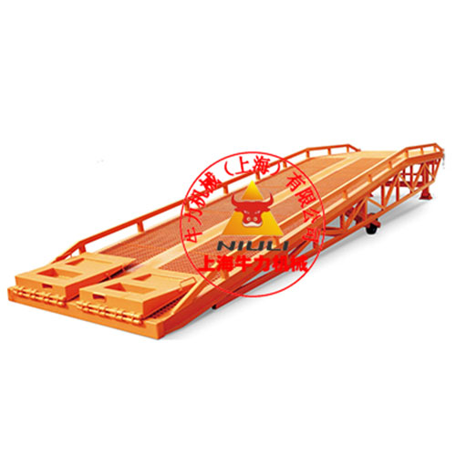 上海牛力机械移动式液压登车桥是与叉车配合使用的货物装卸辅助设备,在仓库和车辆之间搭起桥梁,可根据汽车车厢的高低调节高度,叉车可以直接通过本设备驶入车厢内进行货物的装卸作业。
