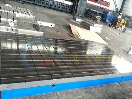 外观:铸铁平台为箱型筋板式,通常底部加强筋喷涂红色防锈漆,工作面边沿喷涂灰色油漆,边沿下部分喷涂蓝色油漆。也可以根据用户要求颜色喷涂。