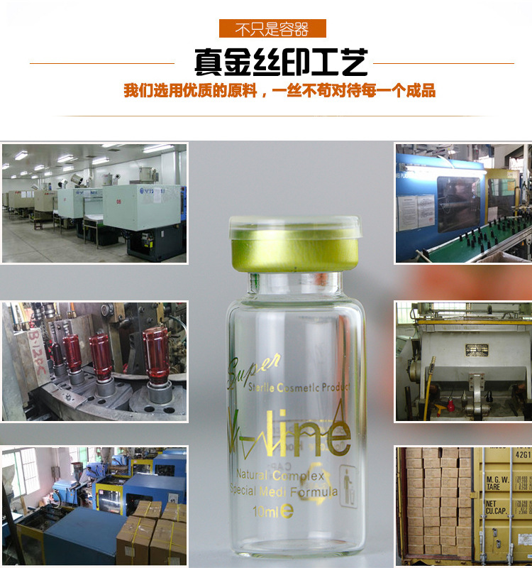 广州万利塑料包装有限公司是一家日用玻璃制品生产企业,专注玻璃包装容器生产制造,主要生产高白料、晶白料、普白料、高硼硅等料色产品。从设计、开模、试样、生产、抛光打磨、蒙砂、真空电镀、uv喷涂、镀七彩、内喷加工、激光雕刻、高低温单色及多色印刷、烫金银、印金银、移印、印花、3D打印、水转印、贴标、贴牌、洗字一体化服务。并为广大客商提供相关的塑料配件、各式喷头、铝盖、瓶肩、底套等配套服务。