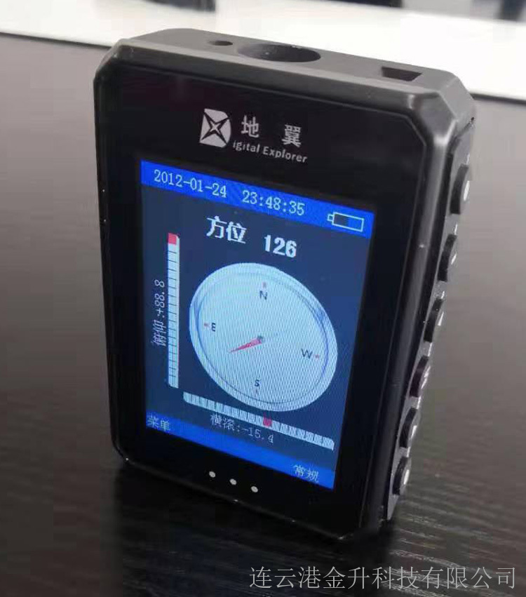 该仪器采用高度集成化的人性化人机交互仿真界面设计,锂离子蓄电池供电。可直接获得方位角、俯仰角、横滚角、距离等信息并显示在仪器的LCD屏上,并采用专业化设计实现了智能测产状、前方任意两点距离测量等功能,实现数据存储功能,利用激光的投线线和打点功能实现地质体的不接触测量,解决了以往罗盘仪、测距仪测量误差较大、操作繁琐等缺陷。另外,该仪器还具有温度、湿度、浮标法流量计算等功能。