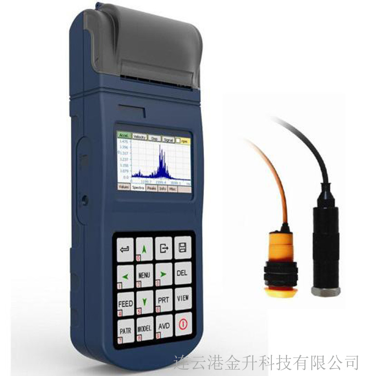 本仪器采用压电式加速度传感器,将振动信号转换成电信号。通过对输入信号的处理分析,获得振动测量的加速度峰值、速度有效值(均方根值)、位移峰-峰值或实时频谱图。同时,本仪器还采用激光转速传感器可进行非接触式转速测量。